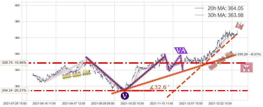 ♞ 20小时均线:364.05,30小时均线:363.98→ 快线>慢线
