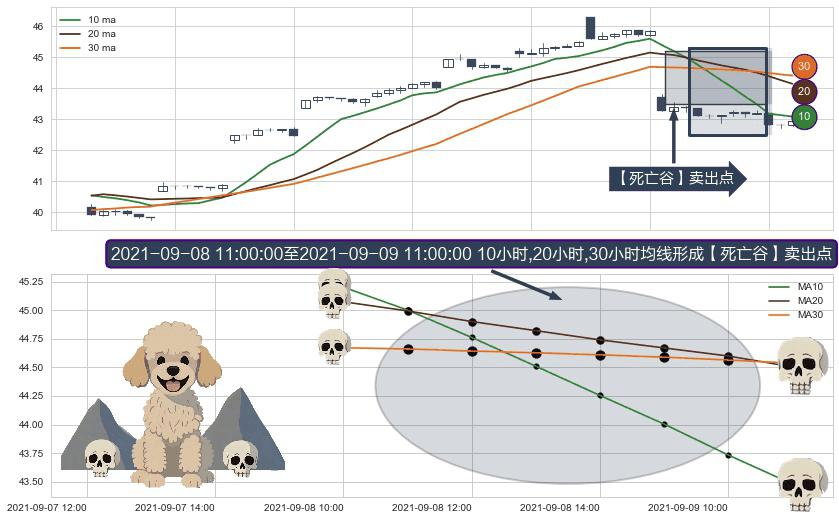 ⚀ 2021-09-08 12:00:00-小时至2021-09-09 11:00:00-小时显现 10小时-20小时-30小时均线 【死亡谷】卖出点 看空信号,后市看跌,卖出