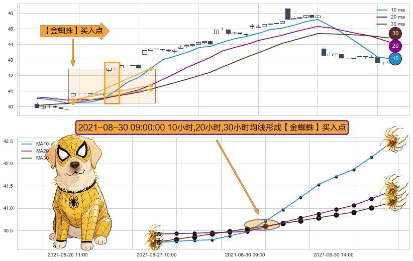 ⚀ 2021-08-30 09:00:00小时显现 10小时-20小时-30小时均线 【金蜘蛛】买入点 看多信号,后市看涨,买入