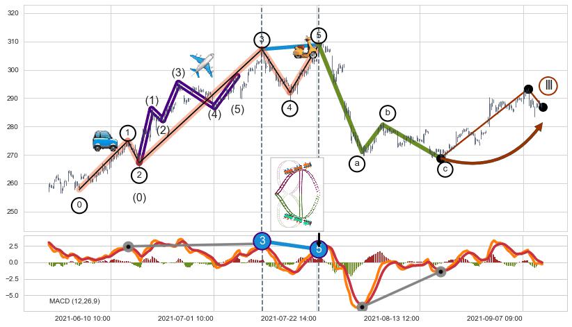 从2021-07-29 10:00至2021-08-24 10:00,共包含115个小时,阶段股价下跌-1.95%,阶段股价变动位移路程比: 1 : 19