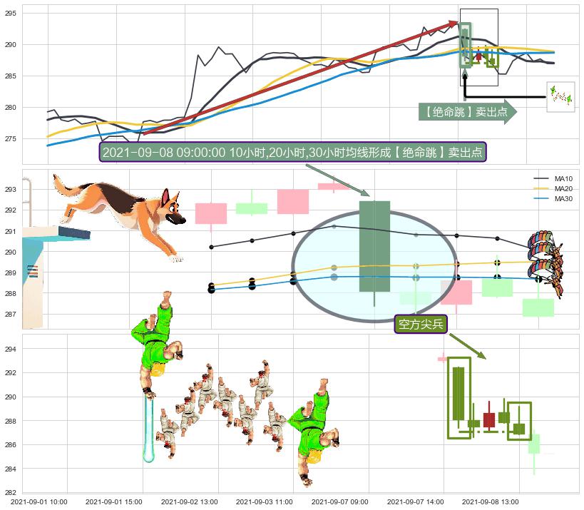 ♞ 10小时均线:287.00,20小时均线:288.81→ 快线<慢线