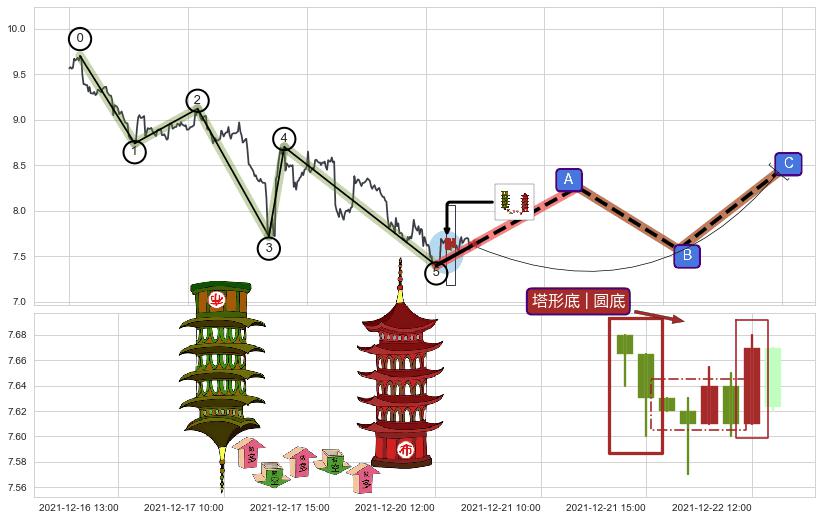 | 17 🅚:塔形底 | 圆底 ➕ 📡:谐波赛福猜想c点下沉击穿越过b点后报复性拉升上涨(均值回复) ☞ 看多信号 ⇥ 【🅚线】交织【图形】⇥ 综合量化分数: 59 | > |