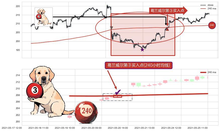 ⚀ 2021-05-20 12:00:00-小时显现 葛兰威尔均线 240小时均线 第③买入点 上升趋势的中继信号,后市看涨,买进信号