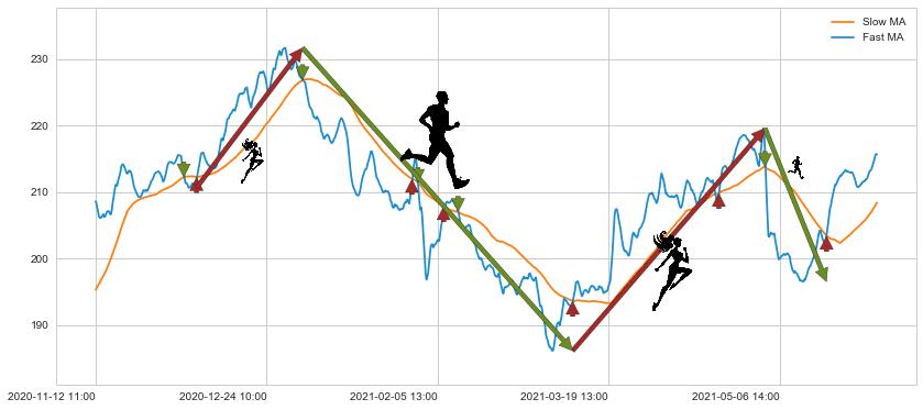 01-05 12:00至03-11 09:00 慢线与快线呈空头排列, 慢线与快线接触少,无缠绕