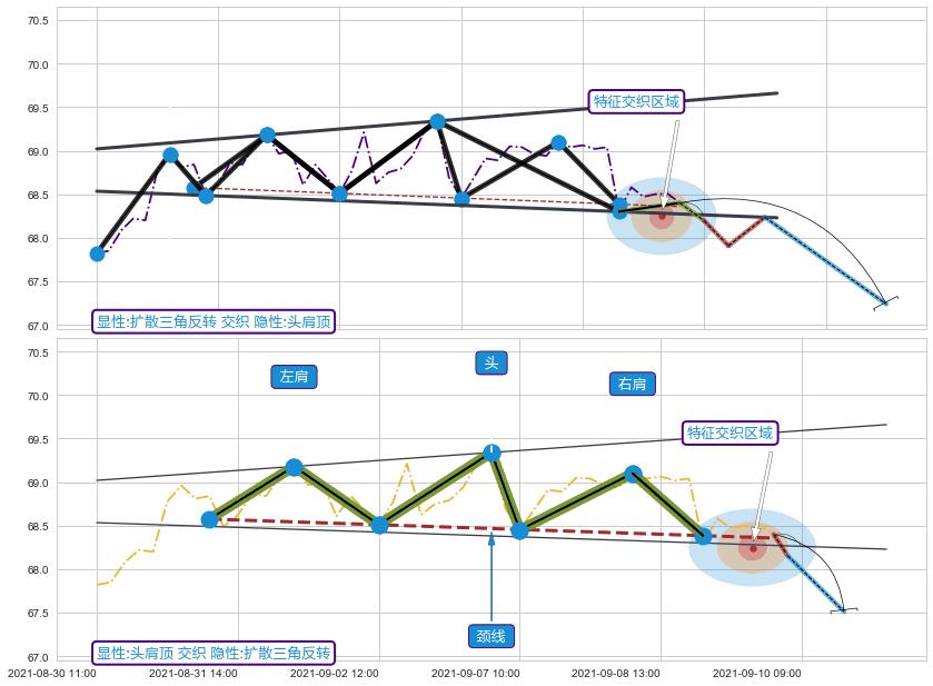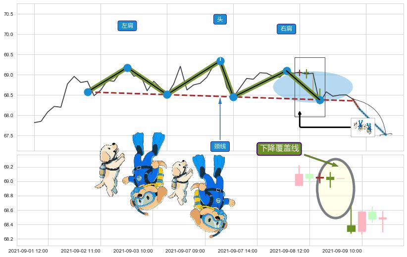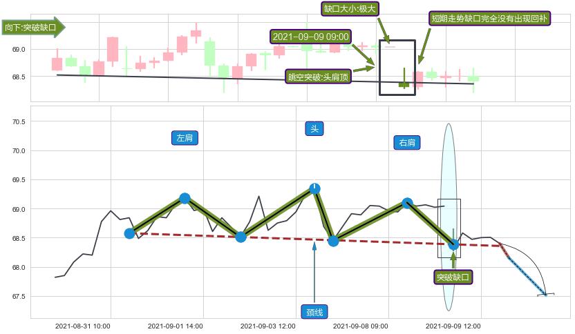 ➢ 【卖1】: 激进型 卖点→(09-09:09: 68.38 )形成突破头肩顶【反转】形态