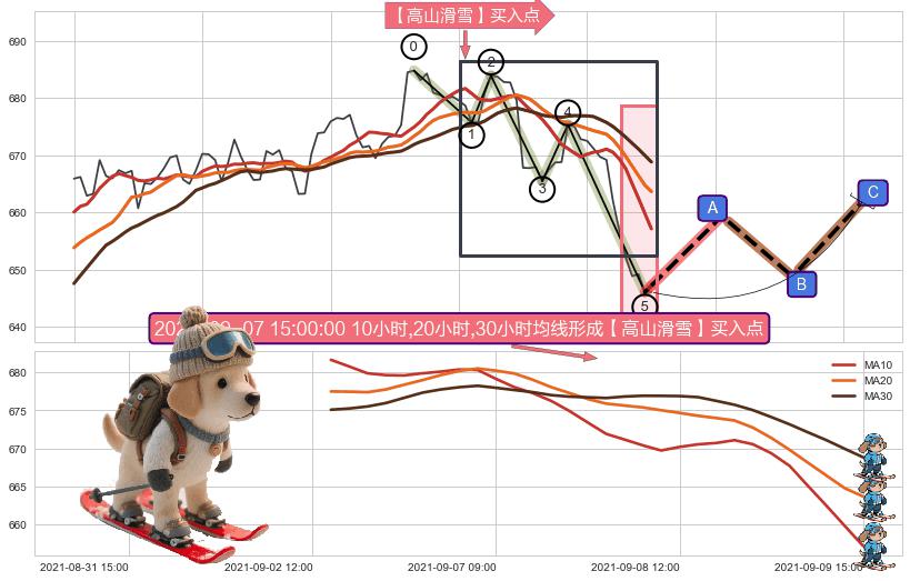 ➣ 高点影线(09-07:10: 669.82 )→回踩→第二根k线高点(09-07:09: 669.54 )