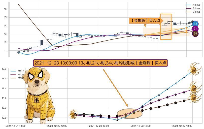 ⚀ 2021-12-23 13:00:00小时显现 13小时-21小时-34小时均线 【金蜘蛛】买入点 看多信号,后市看涨,买入
