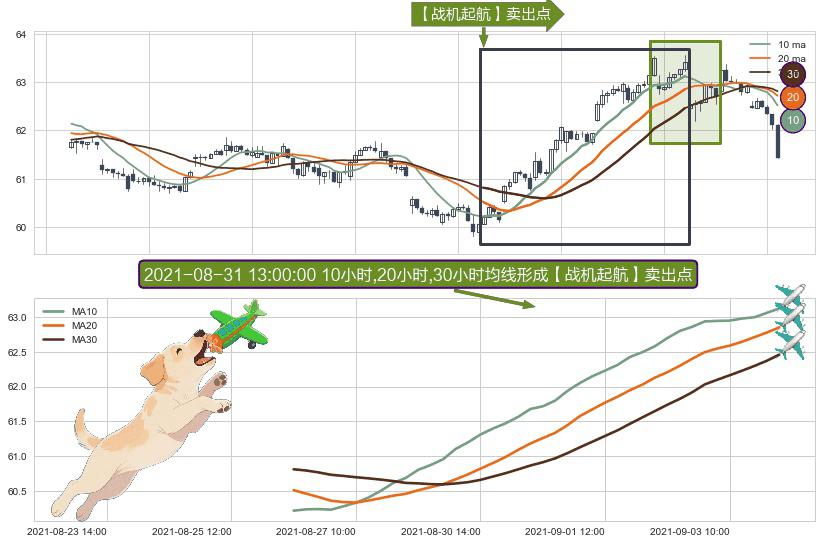 ⚀ 2021-08-26 11:00:00小时-2021-09-03 14:00:00小时显现 10小时-20小时-30小时均线 【战机起航】卖出点 看空信号,后市看跌,卖出
