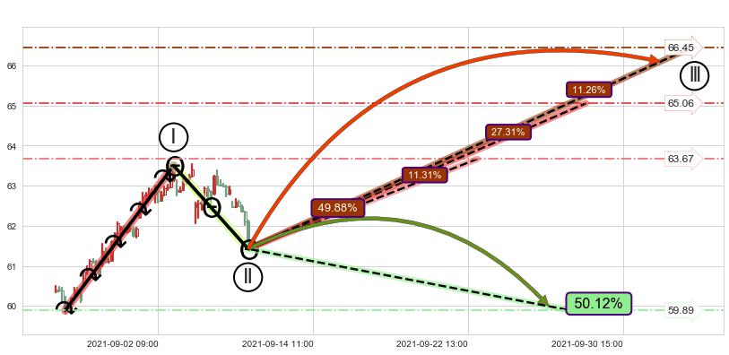 ➢ 循环浪继续向上【最低】位置(09-22:16, 63.67),匹配聚类样本比例22.68%, 可能性概率11.31%
