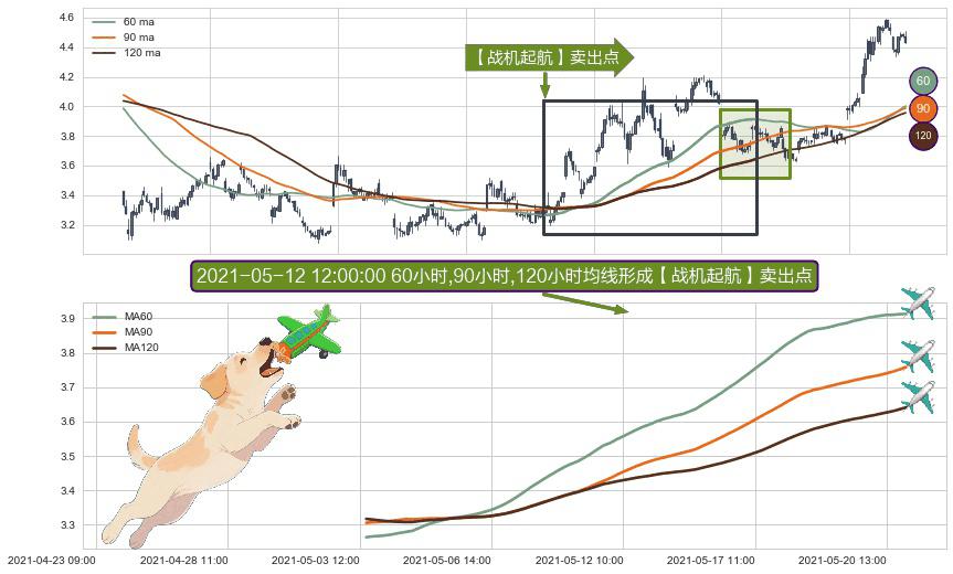 ⚀ 2021-05-03 13:00:00小时-2021-05-21 10:00:00小时显现 60小时-90小时-120小时均线 【战机起航】卖出点 看空信号,后市看跌,卖出