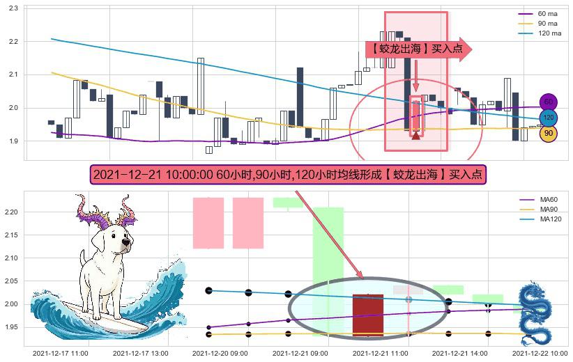 ⚀ 2021-12-21 10:00:00小时显现 60小时-90小时-120小时均线 【蛟龙出海】买入点 看多信号,后市看涨,买入