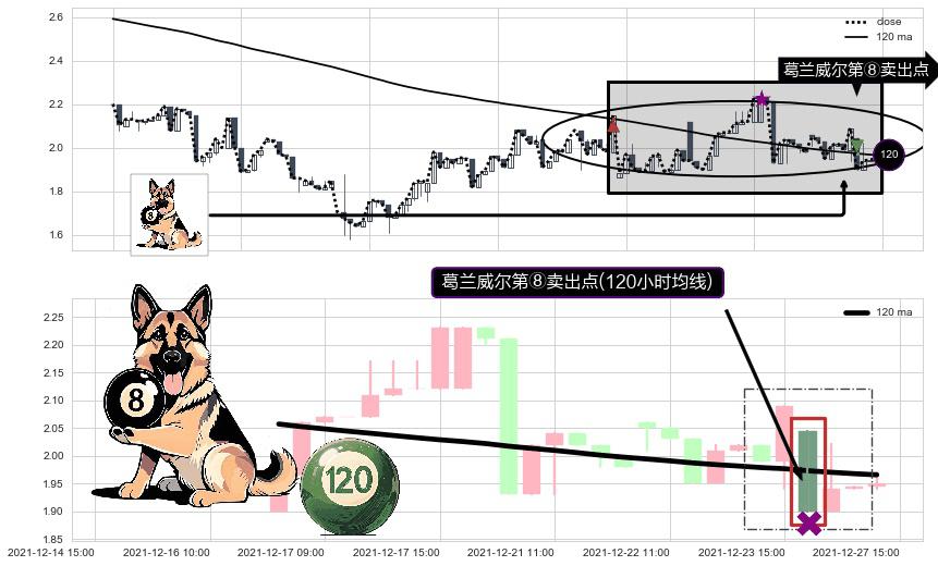 ⚀ 2021-12-27 09:00:00-小时显现 葛兰威尔均线 120小时均线 第⑧卖出点 下降趋势的中继信号,后市看跌,卖出信号