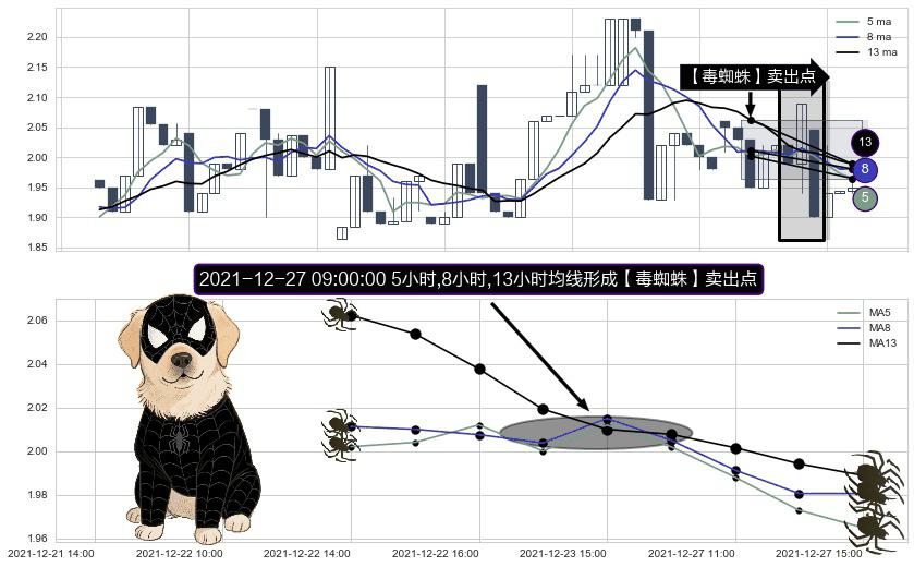 ⚀ 2021-12-27 09:00:00小时显现 5小时-8小时-13小时均线 【毒蜘蛛】卖出点 看空信号,后市看跌,卖出