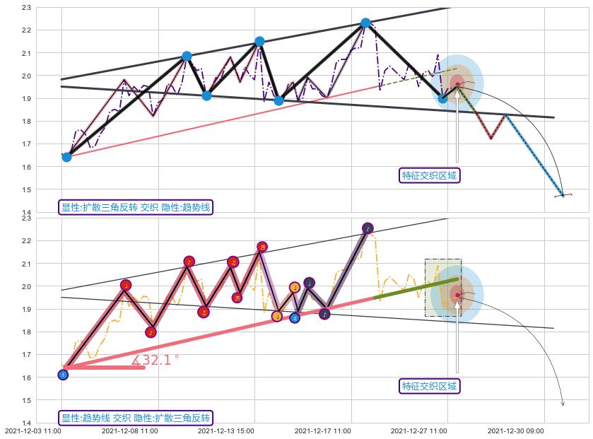 ➣ 【仅预测突破】最后价格:1.9500与预测突破价格:1.8321→【空间中等】后续最小【反转】第一目标价格→(12-30:13: 1.4681 )