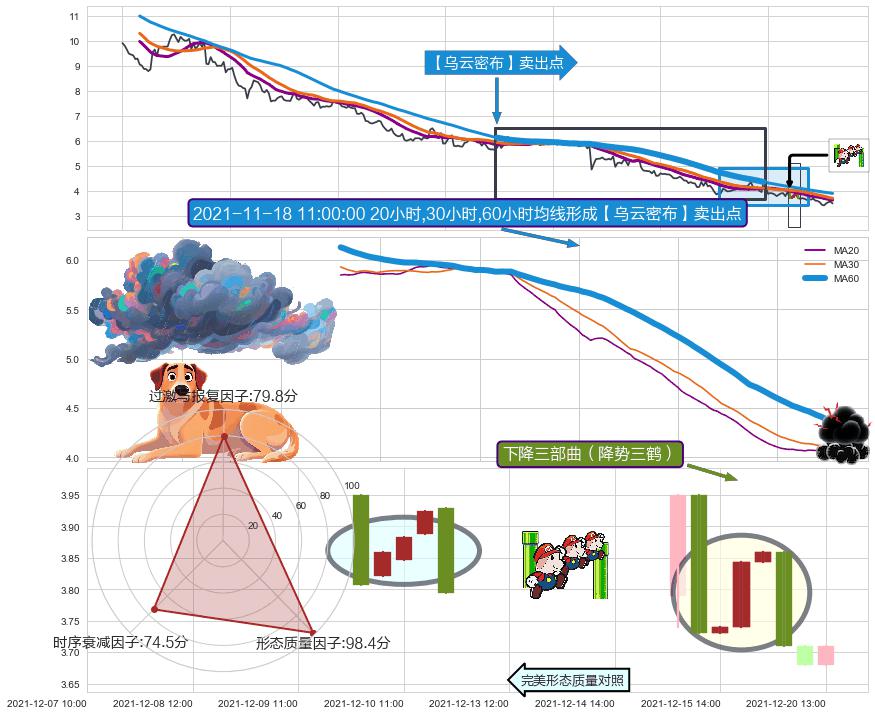 | 4 🅚:两黑夹一红 ➕ 🎢:【乌云密布】卖出点均线组合卖出点信号形成后,猜想后续下行持续,下跌加速(趋势跟踪) ☞ 看空信号 ⇥ 【均线】交织【🅚线】⇥ 综合量化分数: 47 | > |
