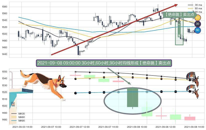 ⚀ 2021-09-08 09:00:00小时显现 30小时-60小时-90小时均线 【绝命跳】卖出点 看空信号,后市看跌,卖出
