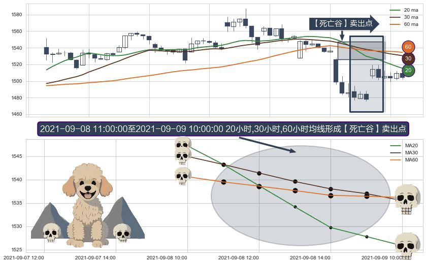 ⚀ 2021-09-08 12:00:00-小时至2021-09-09 10:00:00-小时显现 20小时-30小时-60小时均线 【死亡谷】卖出点 看空信号,后市看跌,卖出