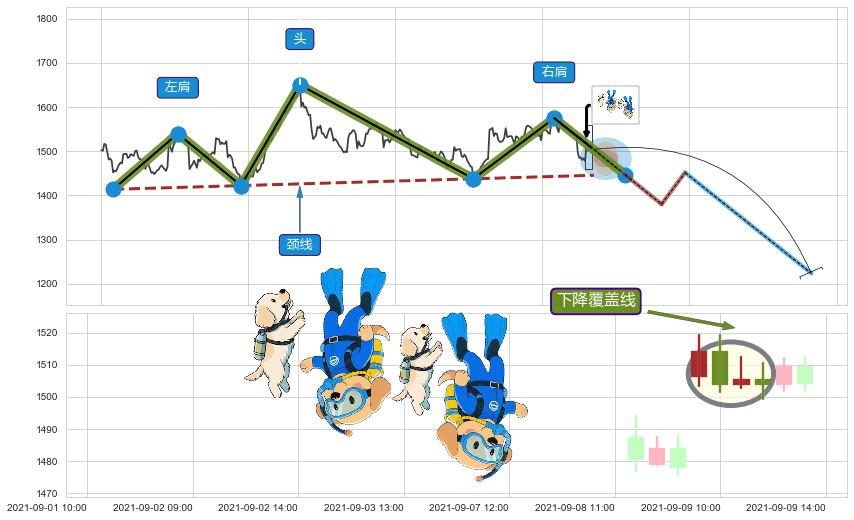 ➢ 低点影线(09-09:12: 1499.29 )→回踩→第二根k线低点(09-09:09: 1503.41 )