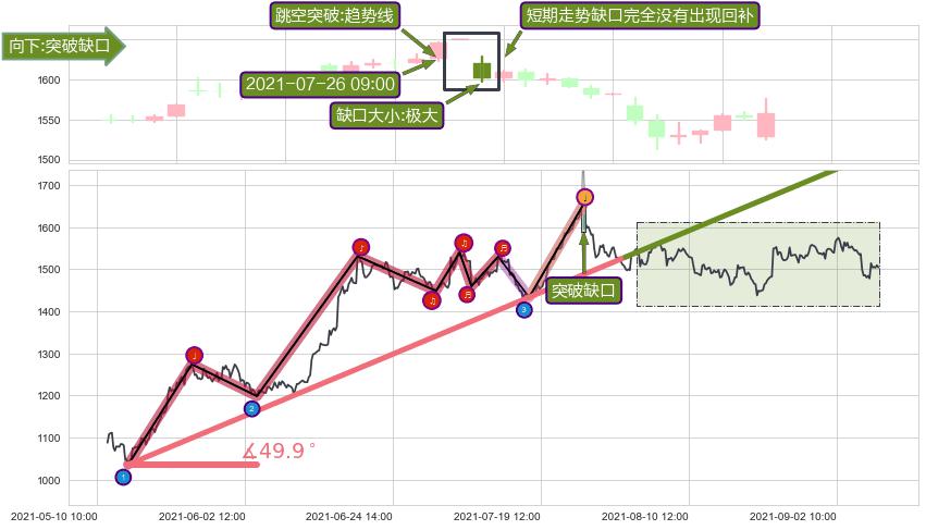 ✂️ 2021-05-13 12:00-2021-07-30 12:00上升趋势存在反转[风险],其原上升趋势的支撑位(1779.51)已破位[强阻力信号],原上升趋势角度: 49.9˚