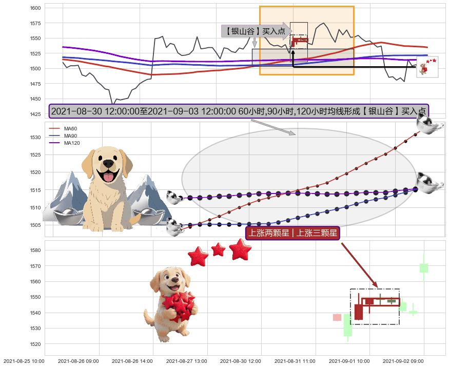 ➢ AI预测: 假定反转启动后, 第❷目标位置(10-08:09, 1504.86)