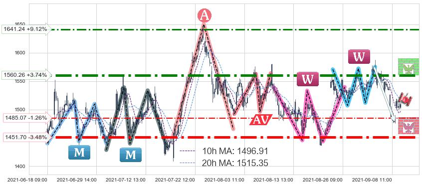 ♘ 阻力价格位1641.24,可信任强度56.11%,距离最后交易2021-09-09 14:00形成的收盘价格1504.08相差 +9.12%