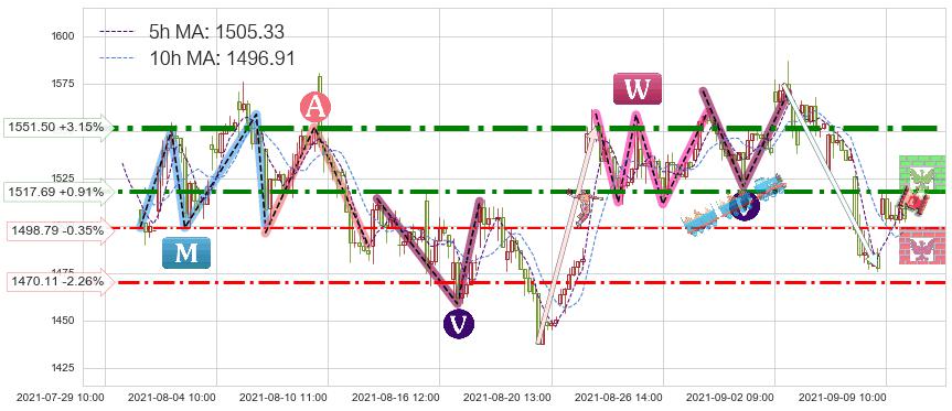 ♘ 阻力价格位1551.50,可信任强度95.06%,距离最后交易2021-09-09 14:00形成的收盘价格1504.08相差 +3.15%
