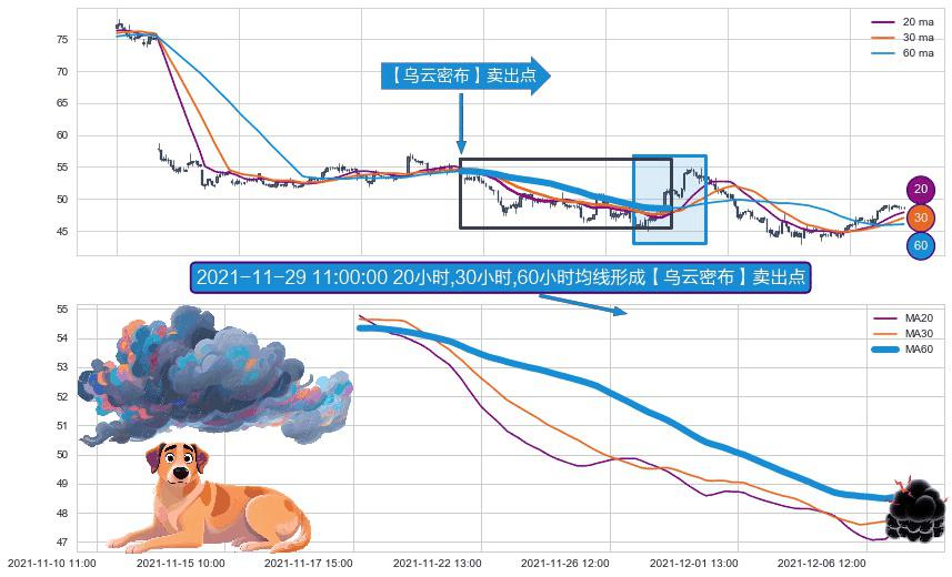 ⚀ 2021-11-18 09:00:00小时-2021-12-07 11:00:00小时显现 20小时-30小时-60小时均线 【乌云密布】卖出点 看空信号,后市看跌,卖出