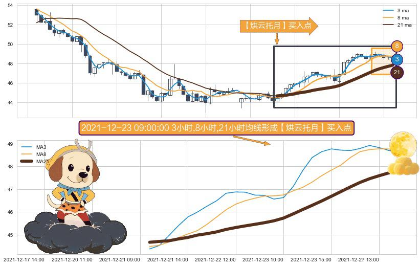 ⚀ 2021-12-21 10:00:00小时-2021-12-27 15:00:00小时显现 3小时-8小时-21小时均线 【烘云托月】买入点 看多信号,后市看涨,买入