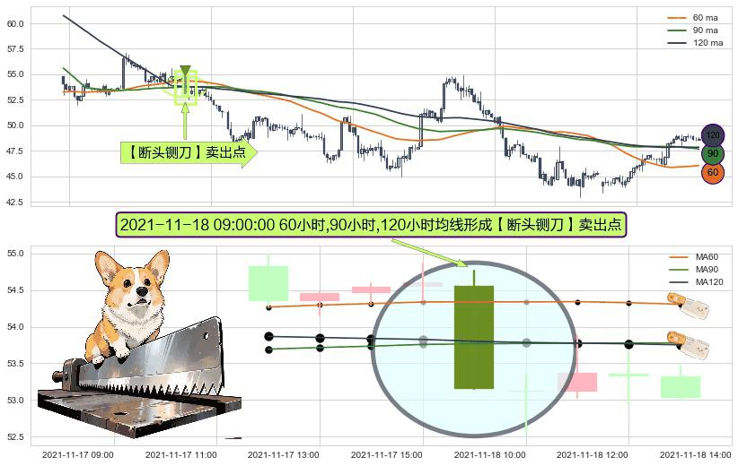 ⚀ 2021-11-18 09:00:00小时显现 60小时-90小时-120小时均线 【断头铡刀】卖出点 看空信号,后市看跌,卖出