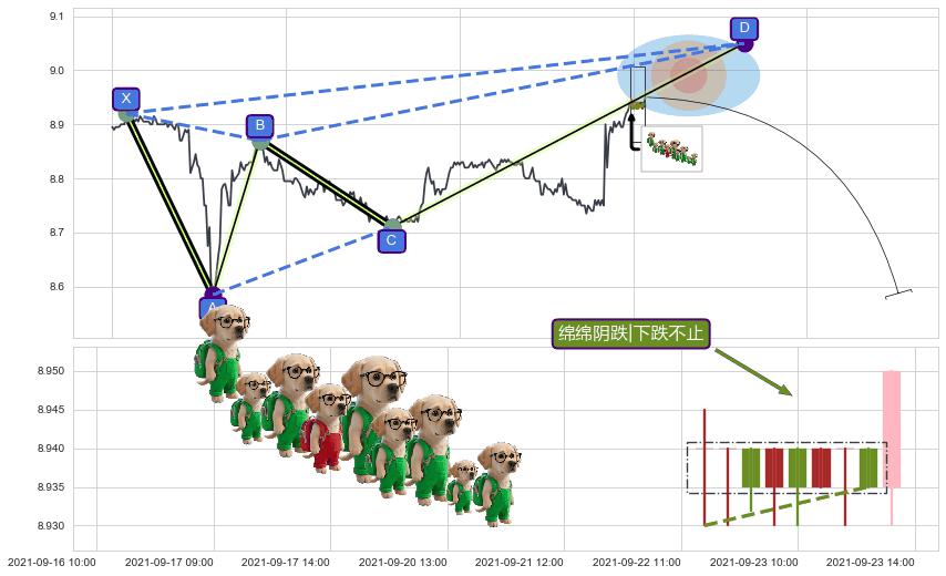 ➣ D点拟合预测价格9.05,距离最后交易收盘价格8.95相差 +1.11%