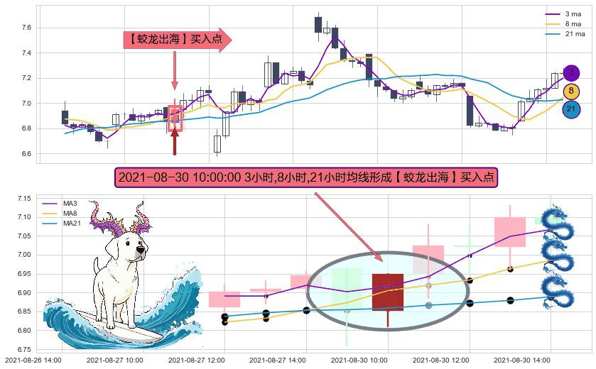 ⚀ 2021-08-30 10:00:00小时显现 3小时-8小时-21小时均线 【蛟龙出海】买入点 看多信号,后市看涨,买入