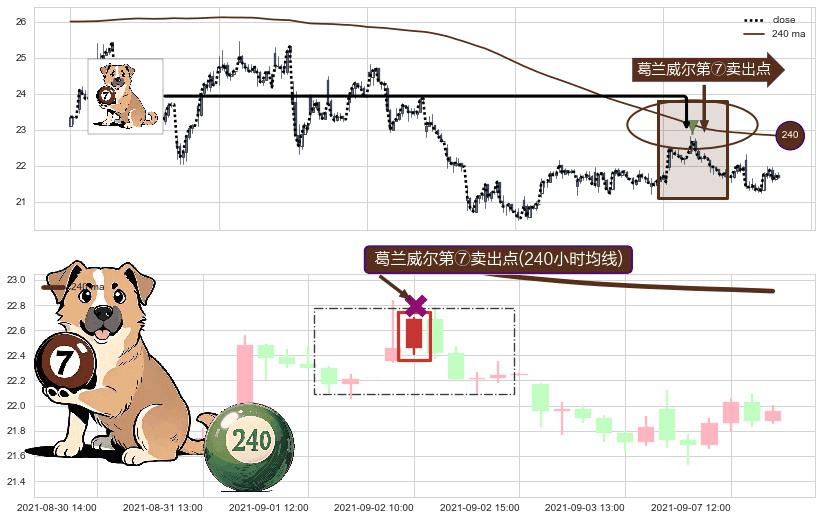 形态多维评估: ⚀ 2021-09-02 10:00:00-小时显现 葛兰威尔均线 240小时均线 第⑦卖出点 下降趋势的中继信号,后市看跌,卖出信号