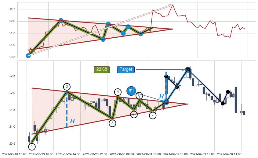 ➢ 【买1】: 激进型 买点 →(09-01:09: 21.73 )形成突破上升【对称】三角形整理【整理】形态