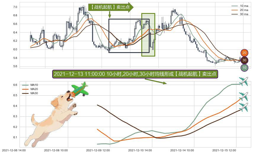 ⚀ 2021-12-09 09:00:00小时-2021-12-15 13:00:00小时显现 10小时-20小时-30小时均线 【战机起航】卖出点 看空信号,后市看跌,卖出