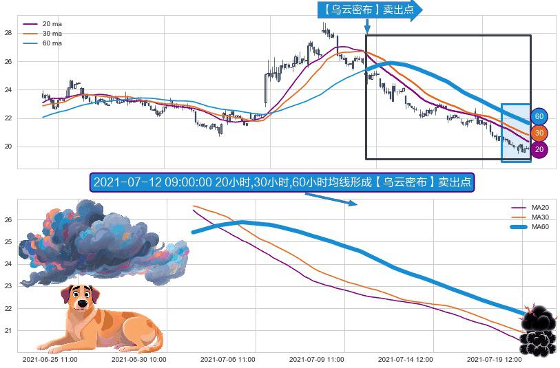 ⚀ 2021-07-01 10:00:00小时-2021-07-19 14:00:00小时显现 20小时-30小时-60小时均线 【乌云密布】卖出点 看空信号,后市看跌,卖出