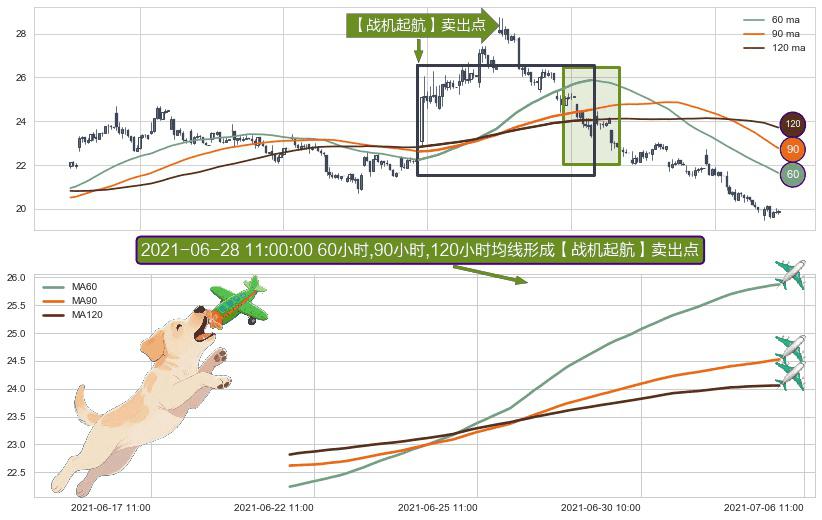 ⚀ 2021-06-21 15:00:00小时-2021-07-02 14:00:00小时显现 60小时-90小时-120小时均线 【战机起航】卖出点 看空信号,后市看跌,卖出