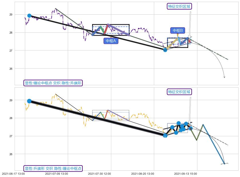➢ 【中枢B】:08-27:13-09-08:13,中枢由4笔构成,共48交易小时, ZG=27.69, ZD=27.34