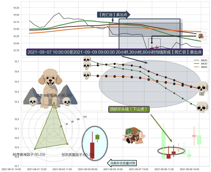 | 2 🅚:【死亡谷】卖出点 ➕ 📐:升楔型下行突破支撑位破位, 猜想持续下沉下跌,被突破的支撑位已变为阻力位 ☞ 看空信号 ⇥ 【均线】交织【图形】⇥ 综合量化分数: 48 | > |