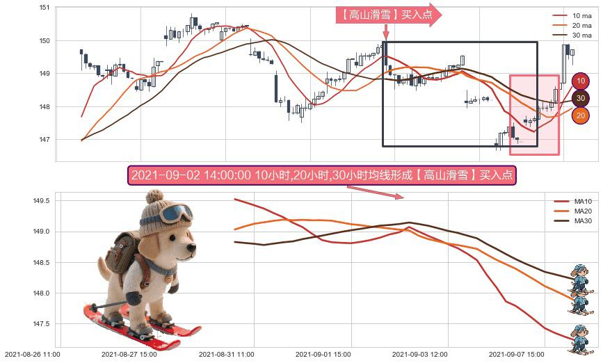 ⚀ 2021-08-31 09:00:00小时-2021-09-08 11:00:00小时显现 10小时-20小时-30小时均线 【高山滑雪】买入点 看多信号,后市看涨,买入