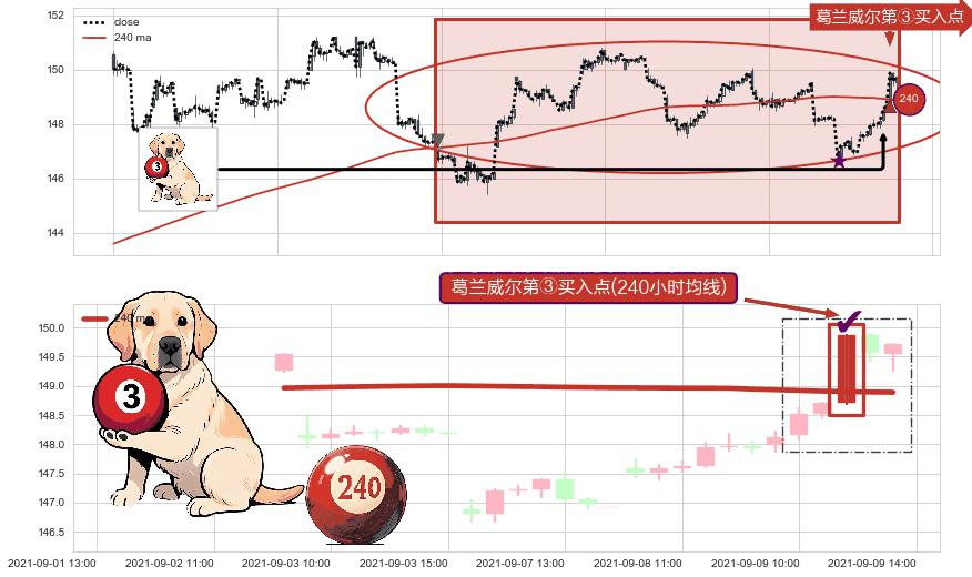 ⚀ 2021-09-09 12:00:00-小时显现 葛兰威尔均线 240小时均线 第③买入点 上升趋势的中继信号,后市看涨,买进信号