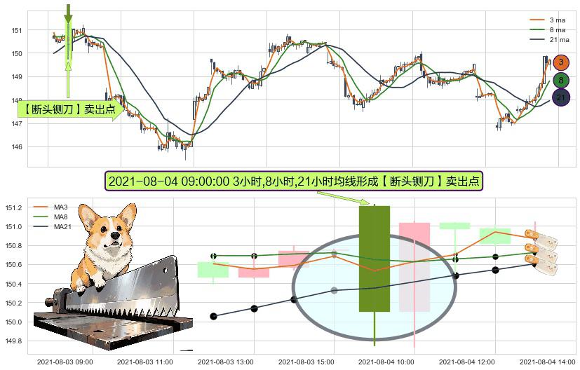 ⚀ 2021-08-04 09:00:00小时显现 3小时-8小时-21小时均线 【断头铡刀】卖出点 看空信号,后市看跌,卖出
