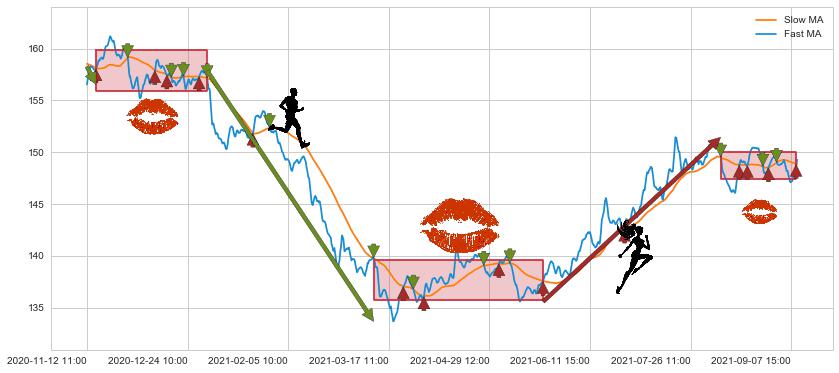 03-11 09:00至05-21 15:00 慢线与快线多次接触,存在上下穿越,有缠绕