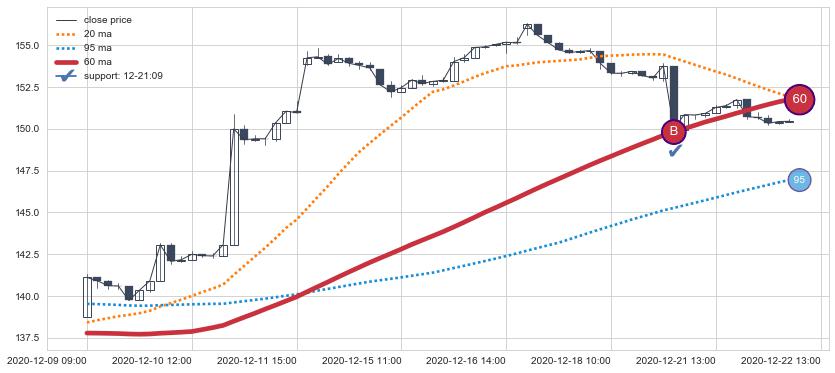 上涨趋势12-09 09:00-12-22 13:00,均线60确认关键支撑1处