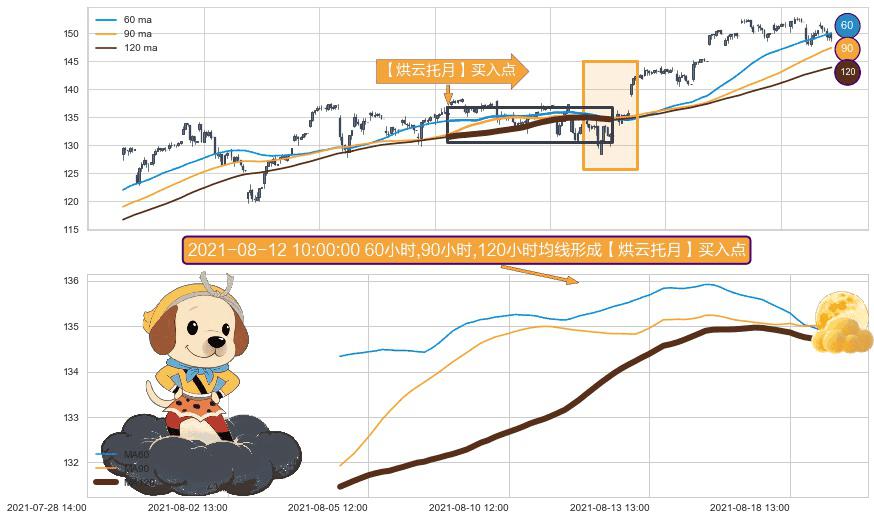 形态多维评估: ⚀ 2021-08-04 15:00:00小时-2021-08-19 13:00:00小时显现 60小时-90小时-120小时均线 【烘云托月】买入点 看多信号,后市看涨,买入