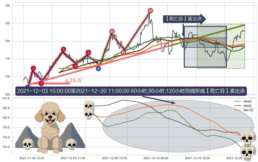 从2021-12-14 12:00至2021-12-27 15:00,共包含60个小时,阶段股价上涨6.04%,阶段股价变动位移路程比: 1 : 4