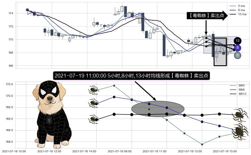 ⚀ 2021-07-19 11:00:00小时显现 5小时-8小时-13小时均线 【毒蜘蛛】卖出点 看空信号,后市看跌,卖出