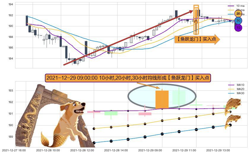 形态多维评估: ⚀ 2021-12-29 09:00:00小时显现 10小时-20小时-30小时均线 【鱼跃龙门】买入点 看多信号,后市看涨,买入