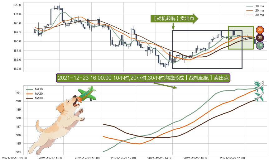 形态多维评估: ⚀ 2021-12-21 11:00:00小时-2021-12-29 14:00:00小时显现 10小时-20小时-30小时均线 【战机起航】卖出点 看空信号,后市看跌,卖出