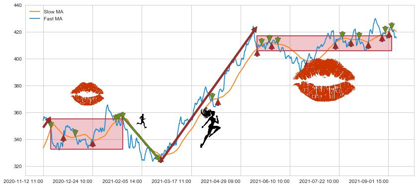 01-21 15:00至02-22 16:00 慢线与快线呈空头排列, 慢线与快线接触少,无缠绕