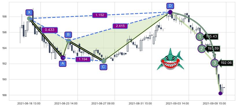 ➣ 已达成看跌【鲨鱼】形态全部的预期目标